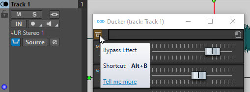Ducker の設定を開くには、トラックのコントロール領域の「Ducker オン/オフ (Ducker On/Off)」をオンにして、「Ducker 設定 (Ducker Settings)」をクリックします。
