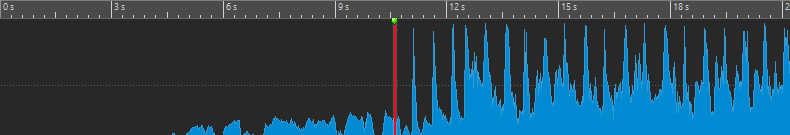オーディオエディターとオーディオモンタージュウィンドウの両方で、タイムルーラーを表示できます。さらに、オーディオエディターではレベルルーラーを表示できます。